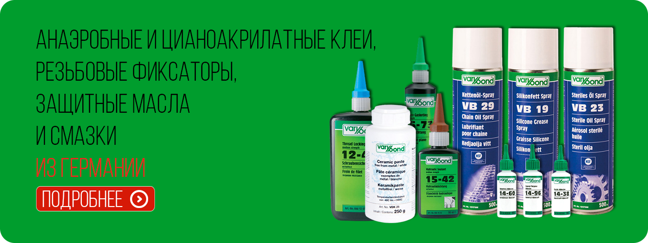 Немецкий производитель промышленной химии компания VARYBOND®, входящая в международный холдинг ITW, уже 10 лет непрерывно совершенствует собственную продукцию, идущую в ногу со стремительно развивающимся прогрессом технологий и техники. Новейшие технологии создаются под пристальным вниманием самых крупных производителей промышленной отрасли, чуткое отношение к потребностям клиентов позволило компании VARYBOND® достичь высочайшего качества производимой промышленной химии.